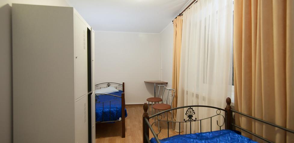 Each room at Gagarin includes simple décor, bedside tables and individual lockers. Shared bathrooms come with a shower.